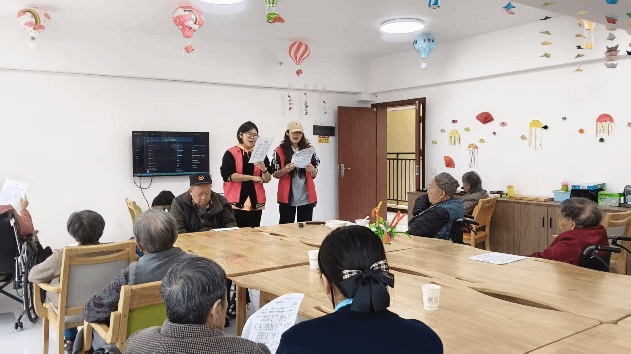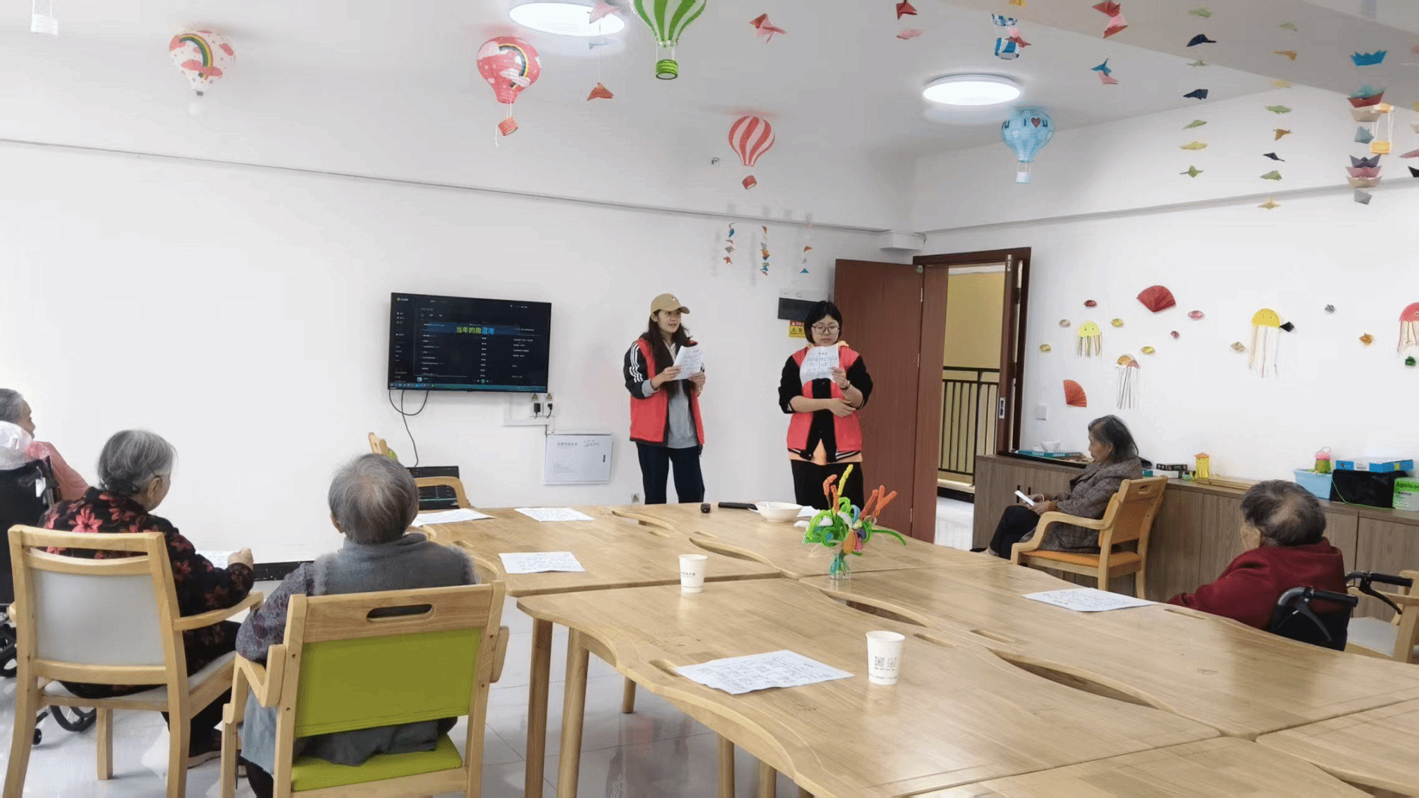 10月25日,“铭记血火岁月·砥砺民族复兴”主题活动率先开展。6名志愿者围绕“纪念抗战胜利80周年”主题,组织老人们参与音乐节拍互动,以节奏唤醒历史记忆;同时邀请多位老人深情讲述抗战先辈的英雄事迹,重温峥嵘岁月。下午,志愿者带来抗战主题才艺表演,并带领全场齐声高唱《歌唱祖国》,开展歌曲教学及“击鼓传花”互动游戏,现场气氛热烈,红色精神在歌声与欢笑中赓续传承。