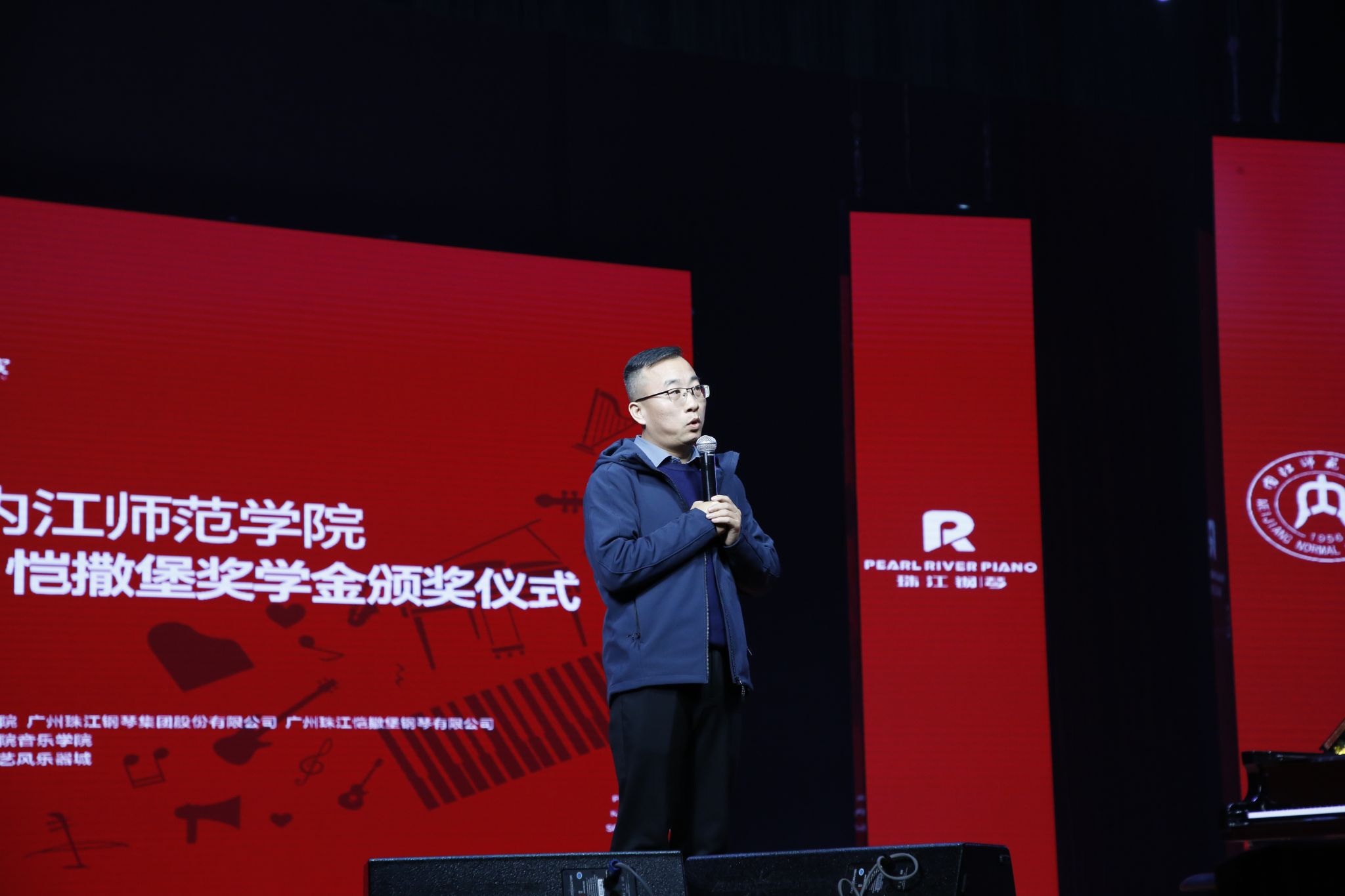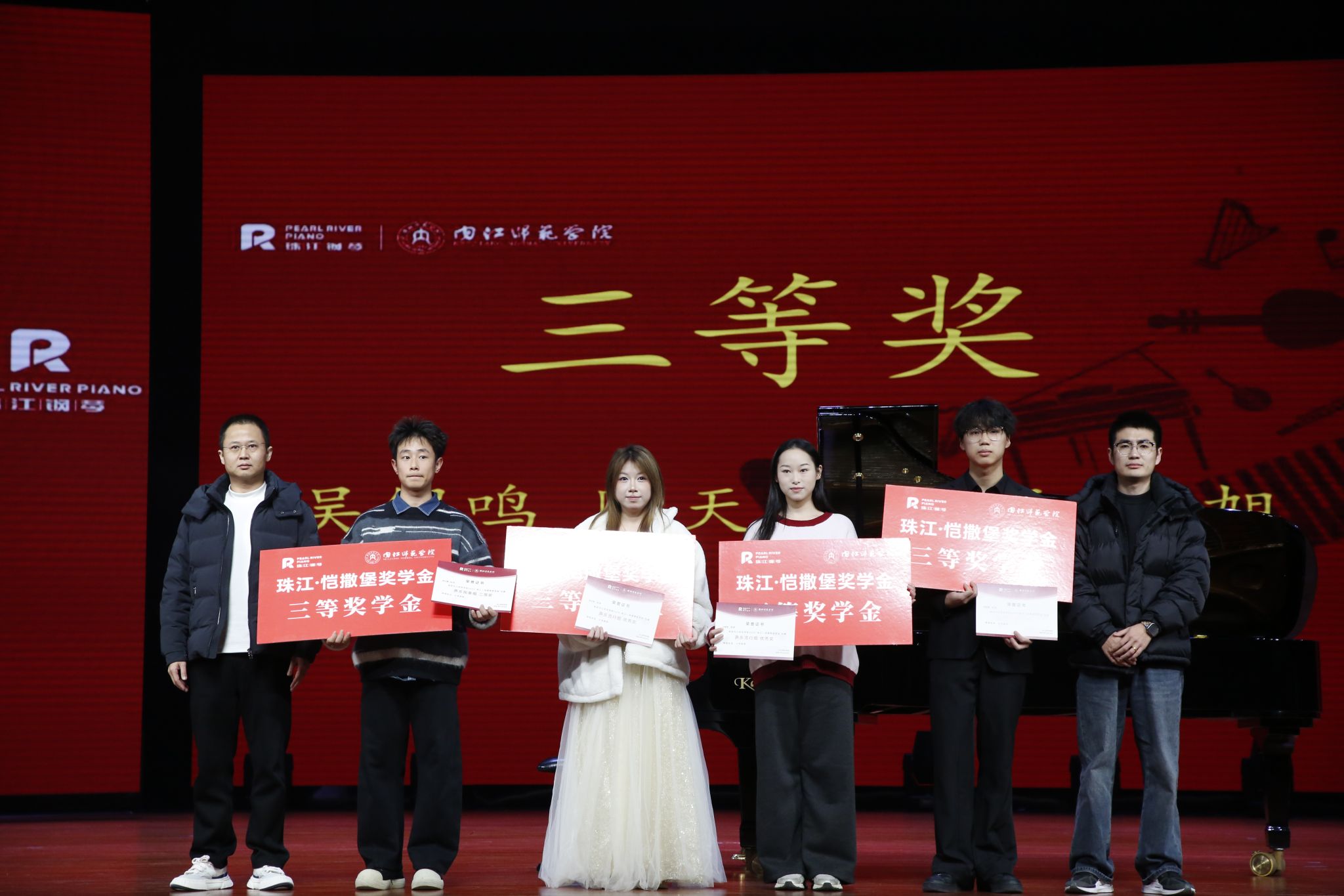 颁奖仪式于当日下午14:00在苌弘剧院举行。内江师范学院音乐学院领导、珠江钢琴集团代表、音乐学院系师生代表及获奖学生共同出席了本次活动。