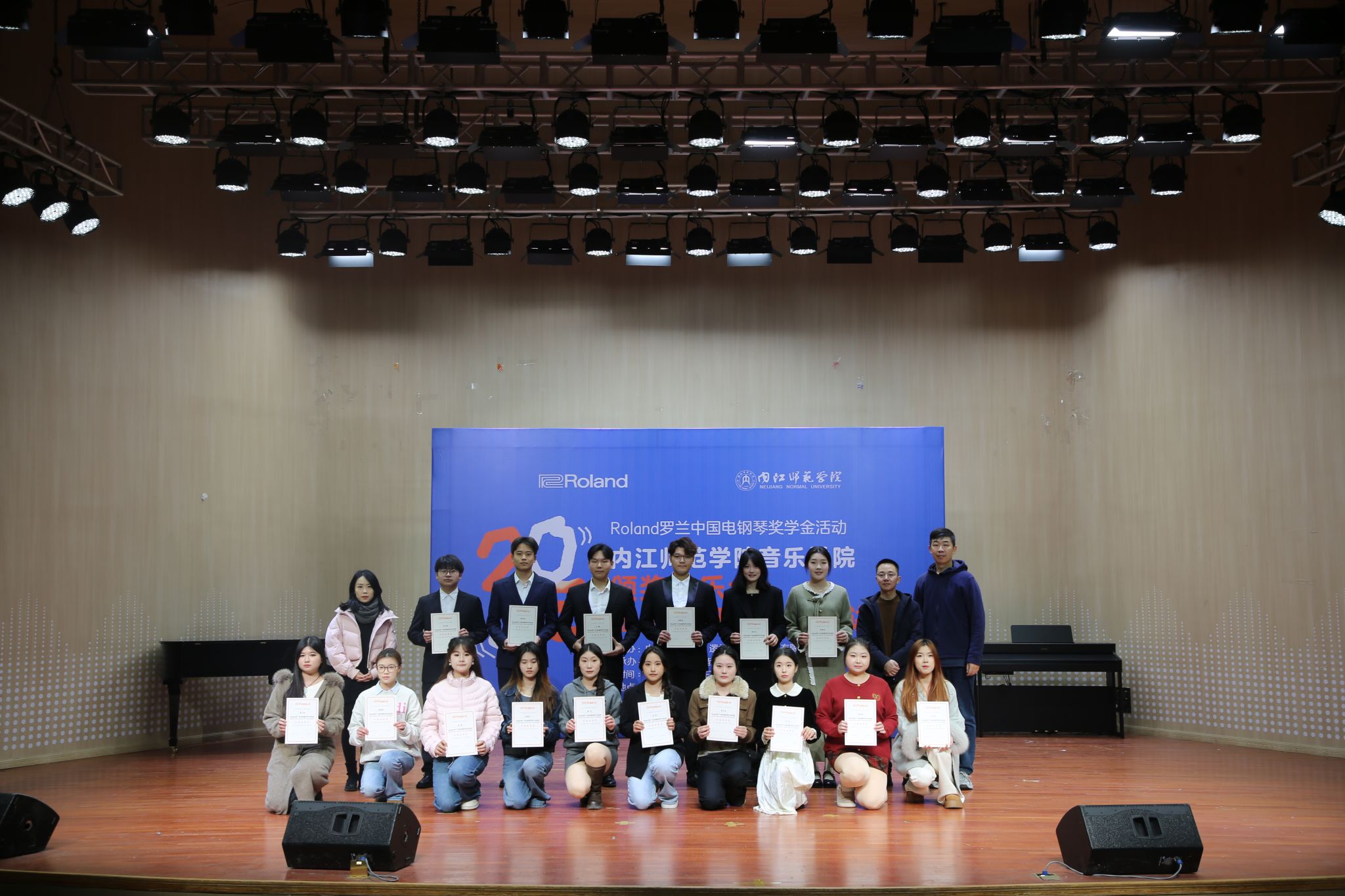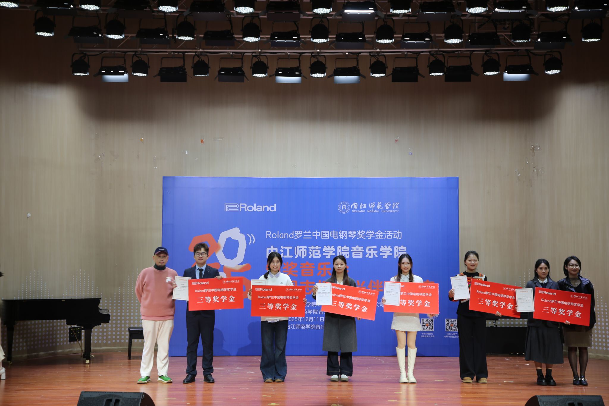 近日,内江师范学院音乐学院2025年度“逻兰奖学金”颁奖仪式于学院音乐厅隆重举行。学院领导、专业教师代表及全体获奖学生出席本次仪式。在庄重而热烈的氛围中,数名在学业表现、艺术实践与创新能力上尤为突出的优秀学子获此殊荣,接受表彰。