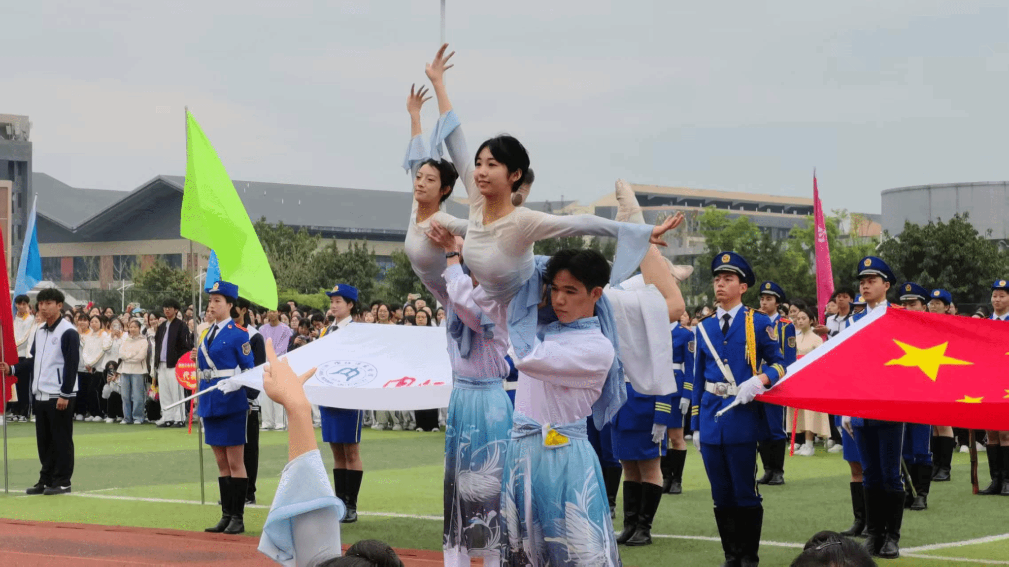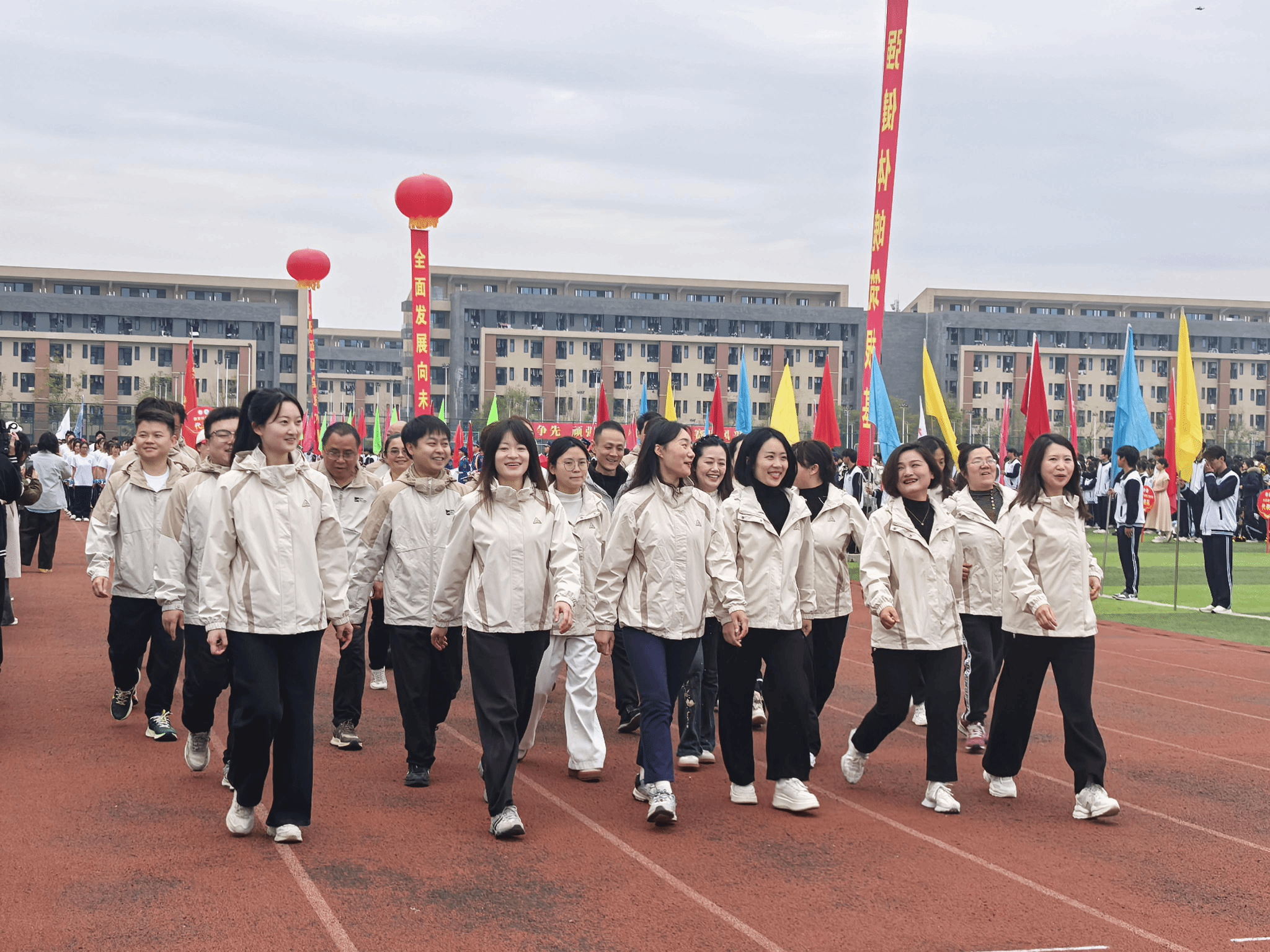 各学院展演结束后,校领导发表重要讲话,为本次运动会指明方向、寄予厚望。领导致辞完毕,现场奏响中华人民共和国国歌与校歌,庄严旋律回荡全场,为本届运动会正式拉开帷幕。