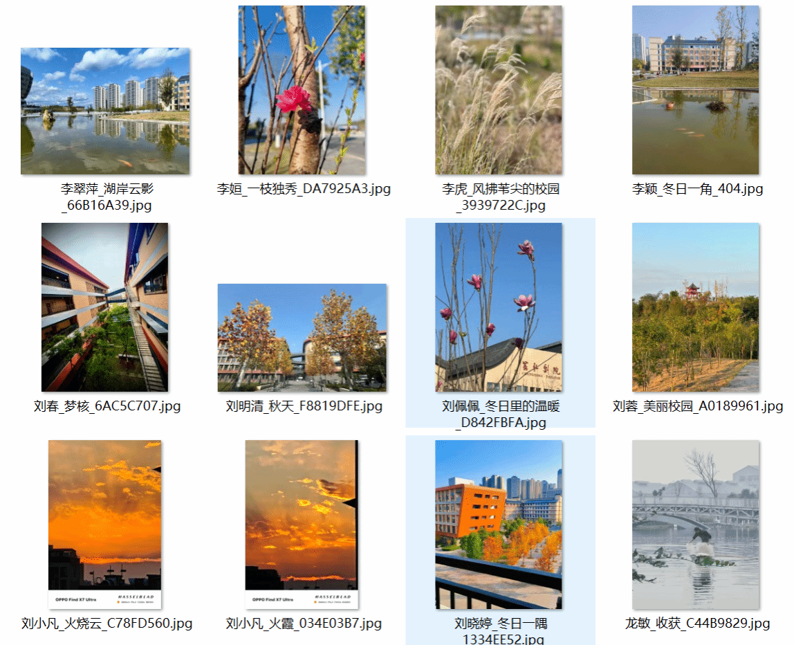 此次活动得到教职工们纷纷响应,教职工利用课余与闲暇时光,穿梭于校园角落与城市景致中,用镜头定格冬日里的韵律之美,让每一张照片都成为承载热爱与灵感的艺术表达。