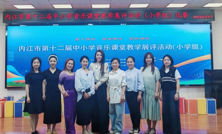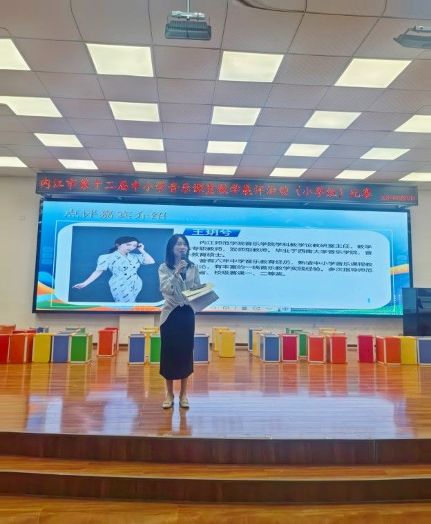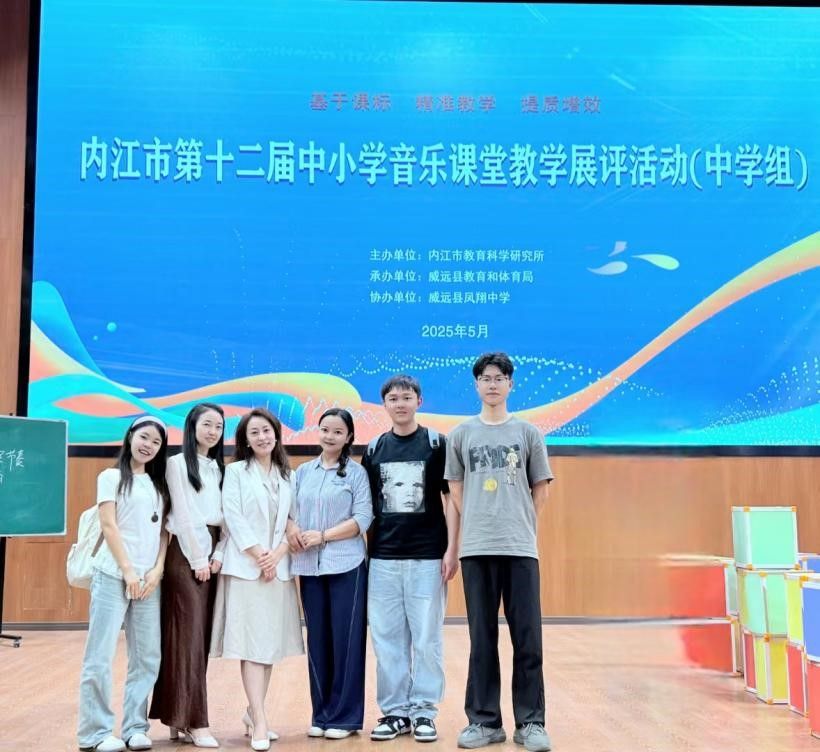 内江市第十二届中小学音乐课堂教学展评活动于2025年5月27日 在威远县圆满落幕。本次活动中学组与小学组赛课分别在威远县凤翔中学和威远县南晖小学举行,共呈现14节精彩课例。内江师范学院音乐学院派出三位教学法骨干教师王玥兮、陈彦如、邹雪姣,深度参与活动并担任评委,为提升区域音乐教育质量贡献高校智慧,彰显了校地合作的紧密联系与音乐学院对此的高度重视。