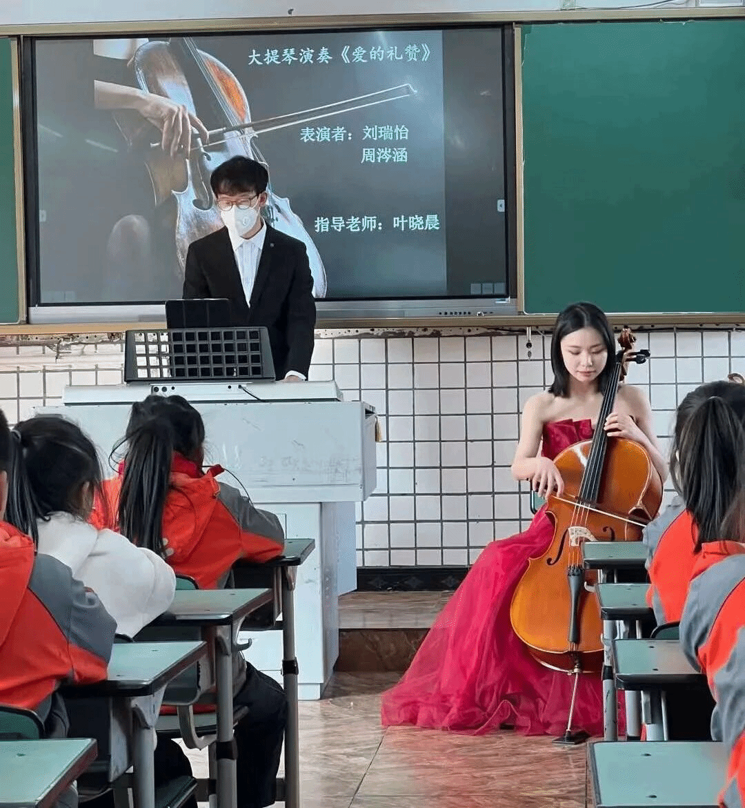 本次音乐公开课的主题是各种乐器欣赏,音乐学院的老师和同学们带来了二胡、古筝、大提琴、单簧管、萨克斯等乐器,并现场为同学们演奏了《赛马》、《彝族舞曲》、《爱的礼赞》等著名曲目。优美的乐曲让同学们沉醉其中,本堂课不仅让同学们对乐器有了更多的了解,也让他们近距离感受到了音乐的魅力。