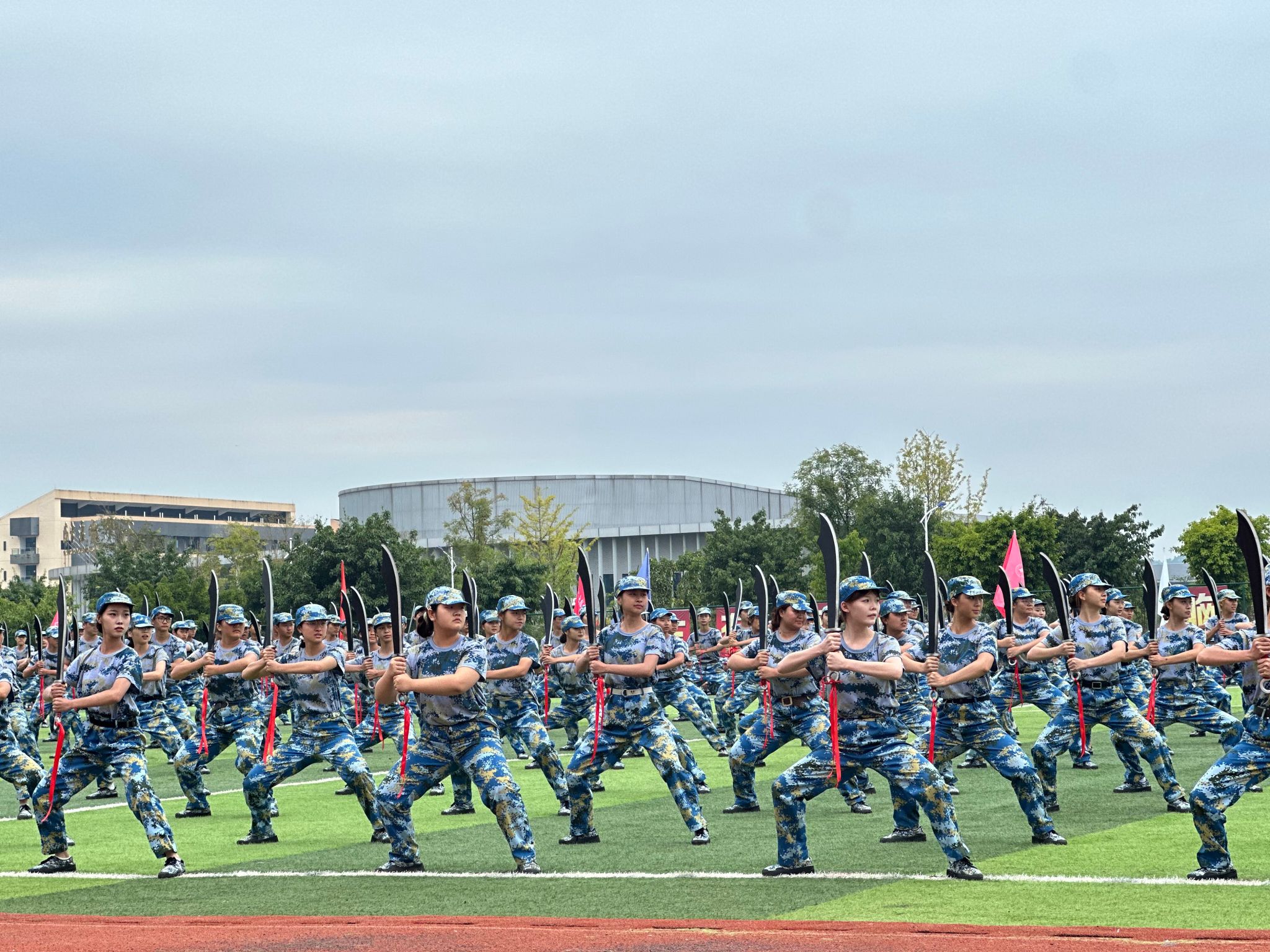在汇报环节,学院方队随序列亮相,同学们步伐铿锵、口号洪亮,以高度整齐的队列展现良好训练效果;待特色方队展示阶段,“大刀连”成员手持器械登场,动作刚劲有力、队形衔接有序,将多日训练成果充分呈现,赢得现场阵阵掌声。